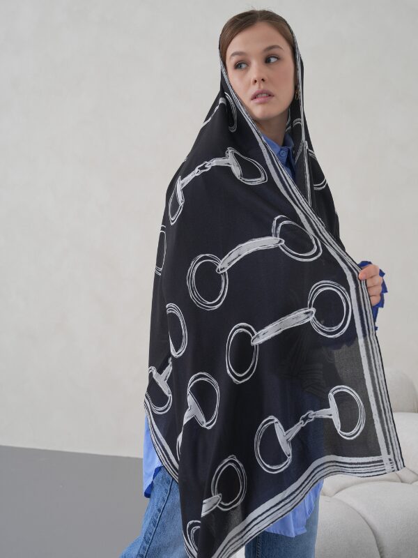 Dark Blue Belt Viskon Şal